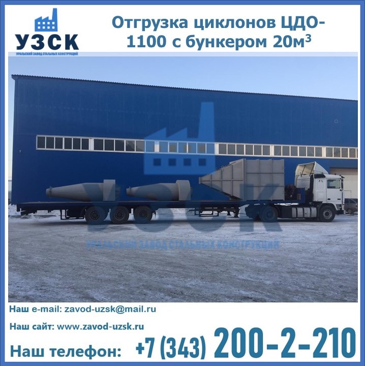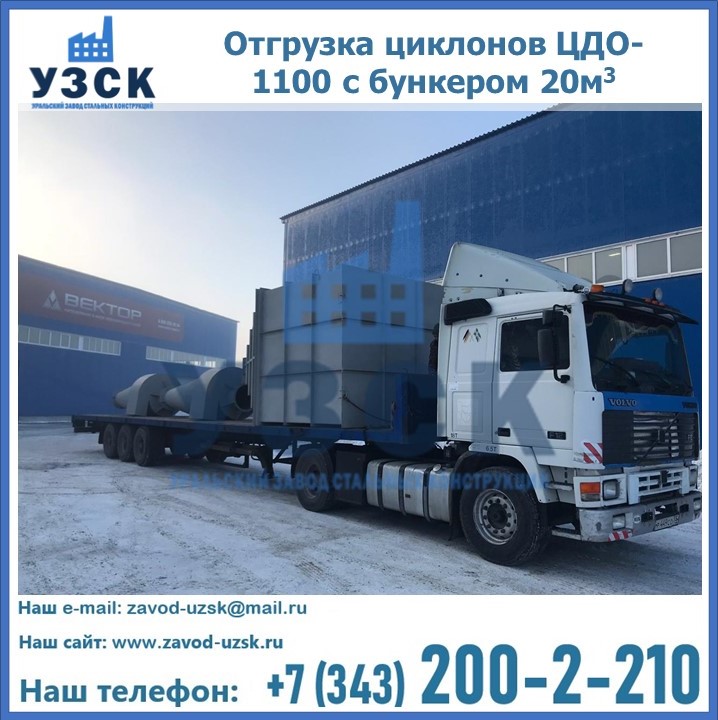 Циклоны ЦДО-1100 с бункером на 20 кубов были отгружены в декабре 2018 года в г. Новосибирск Хабаровск.
