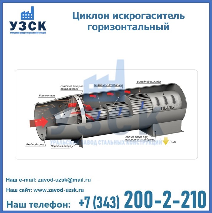 Горизонтальные циклоны-искрогасители ЦГ поставляются в Хабаровске в сборке или же транспортными единицами для последующей сборки, если предназначены для работы с большими объемами.