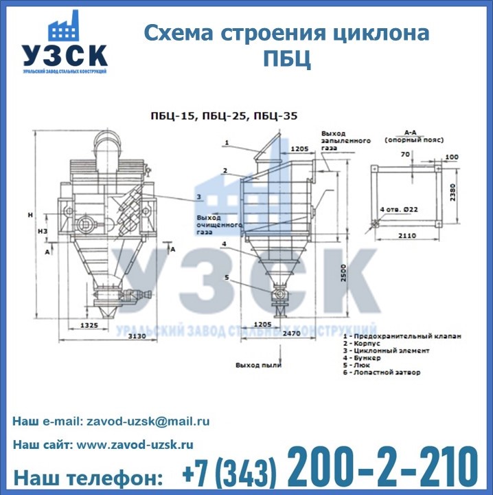 Конструкционные особенности и элементы строения циклонов ПБЦ
