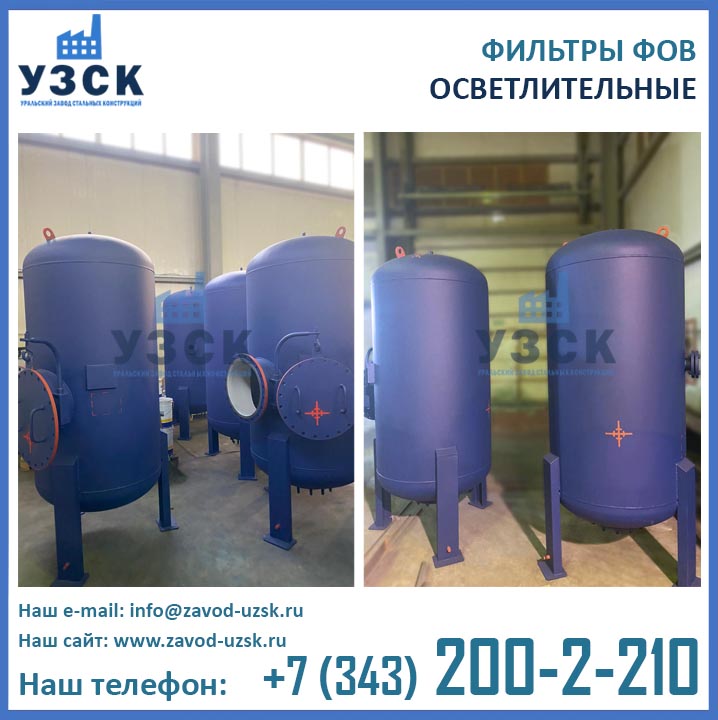 Изготовитель однокамерных фильтров ФОВ диаметром 1 м с рабочим давлением 0,6 МПа — Уральский Завод Стальных Конструкций (УЗСК). Изготовление фильтров ФОВ1К в Хабаровске выполняется из листовой стали. Подбор марки стали осуществляется в соответствии с условиями дальнейшей эксплуатации оборудования. Высокое качество продукции УЗСК подтверждено соответствующими документами, ознакомиться с которыми Вы можете в разделе «ДОКУМЕНТАЦИЯ» на нашем сайте. Завод УЗСК имеет все необходимое оборудование для изготовления двухкамерных фильтров ФОВ любой сложности, как типовых конструкций, так и по индивидуальным размерам и чертежам заказчика. Также наш завод располагает собственной лабораторией неразрушающего контроля и осуществляет гидравлические испытания готовой продукции на аттестованном гидростенде. При испытании фильтров ФОВ1К-1,0-0,6 дается пробное давление 0,9 Мпа (9,0 кгс/см2).